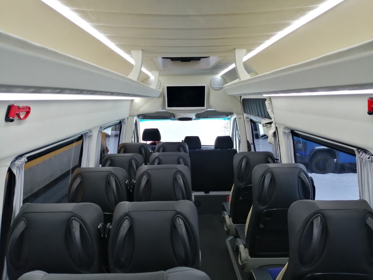 Volkswagen Crafter оснащен большим количеством опций, которые сделают поездку максимально удобной и приятной. В салоне, рассчитанном на 20 пассажиров, много свободного пространства. Для размещения личных вещей предусмотрено багажное отделение. Оптимальный микроклимат обеспечивается кондиционерами и системой вентиляции. К вашим услугам телевизор и CD/DVD, которые помогут скоротать время в дороге.